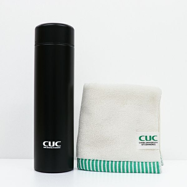 スティックサーモボトル 容量350ml ×1本 色:黒 CUCオリジナルハンドタオル 今治製綿100% 1枚 250×250mm