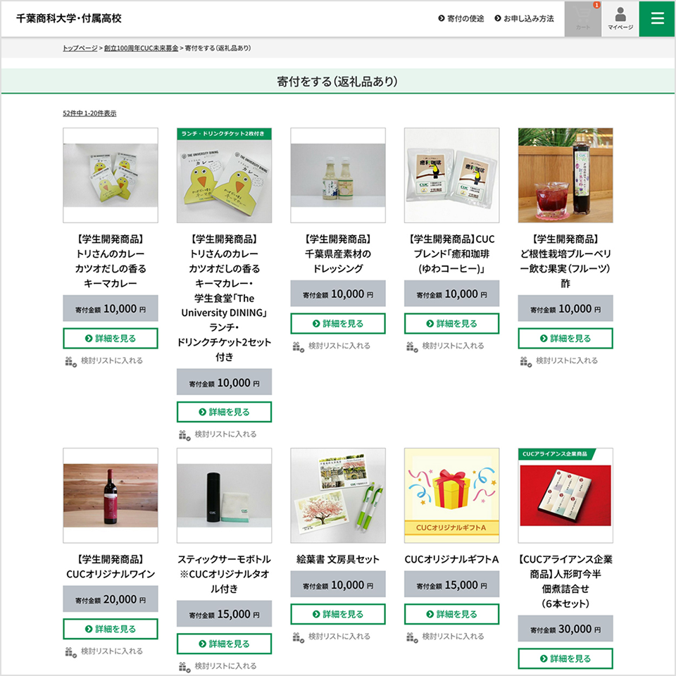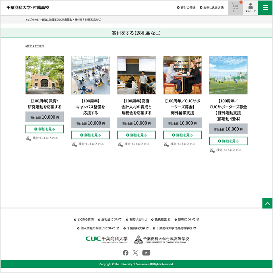 寄付一覧ページより「寄付の使途」をご確認の上、お選びください。
