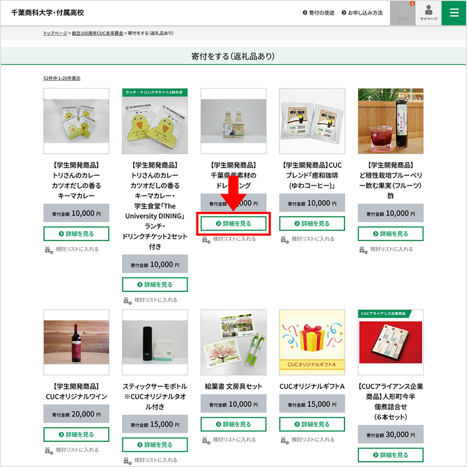 ご希望の返礼品の「詳細を見る」ボタンをクリックし、詳細ページへ進みます。